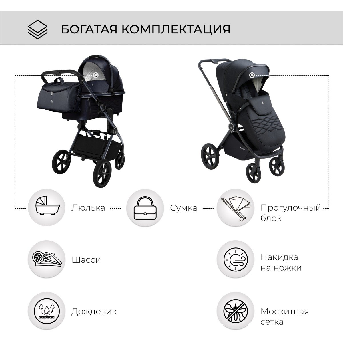 Обновленные колеса. Особое внимание стоит уделить новым инновационным колесам, которые стали настоящим прорывом в дизайне колясок. Они изготовлены из современных материалов, которые эффективно поглощают все неровности и удары во время движения, обеспечивая плавный ход коляски. Легкость и маневренность колес, делают каждую прогулку комфортной и приятной. Теперь вы можете наслаждаться прогулками с малышом, не беспокоясь о неровностях дороги!