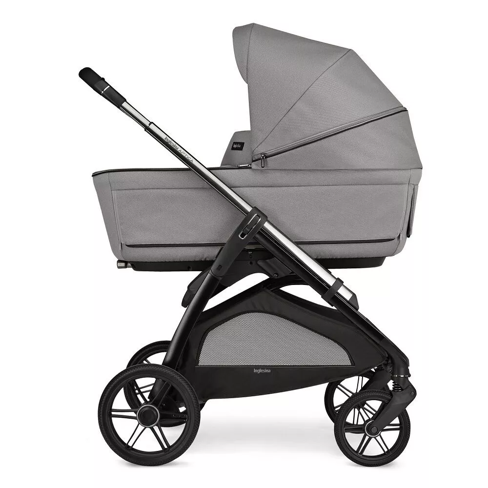 Inglesina Aptica New продумана и для лета, и для зимы. Большая накидка на ножки с дополнительным отворотом превращает колыбель в непродуваемый кокон. Крепится она молнией, отстегивается с обеих сторон и легко откидывается для доступа к новорожденному. Большой капюшон имеет дополнительный солнцезащитный козырек, который легко убирается внутрь. Регулируется капюшон при помощи двух кнопок по бокам. Опускается и поднимается беззвучно. Для жаркого времени года – трехступенчатая система вентиляции. Большая секция в капюшоне, окно в изголовье и открывающиеся отверстия на дне люльки. Откиньте шторки на окошках, передвиньте рычаг на дне в положение «проветривание», и воздух будет циркулировать внутри люльки, создавая максимально комфортный микроклимат даже в знойный день.